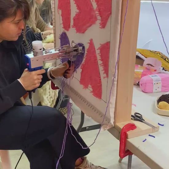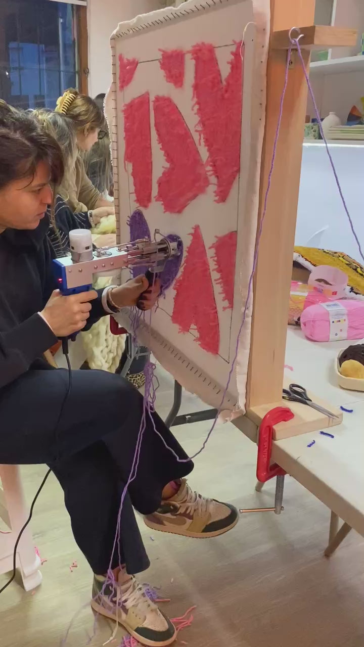 En este taller vas a crear tu alfombra desde cero con pistola de tufting.
